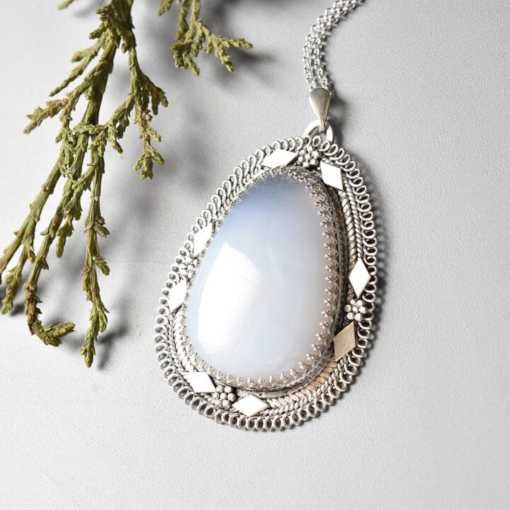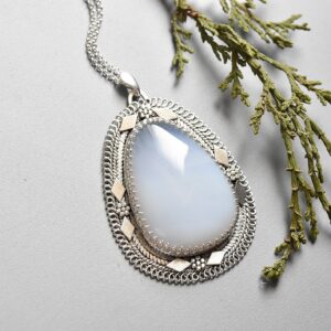 Elevate your style with this exquisite handmade pendant featuring a stunning light blue Mohave Chalcedony in a unique pear shape. Set in 925 sterling silver, this artisan-crafted piece blends antique charm with modern elegance – perfect for boho, vintage, and minimalist fashion lovers.