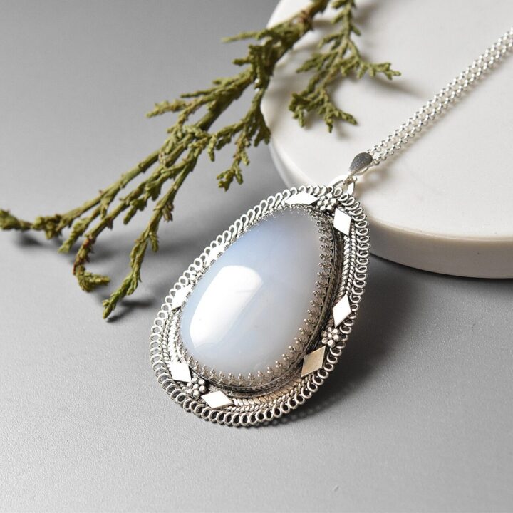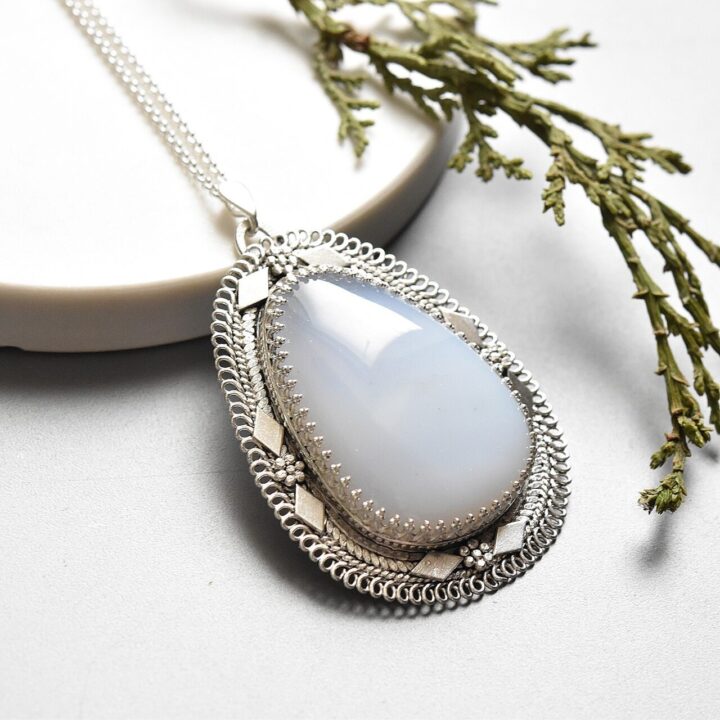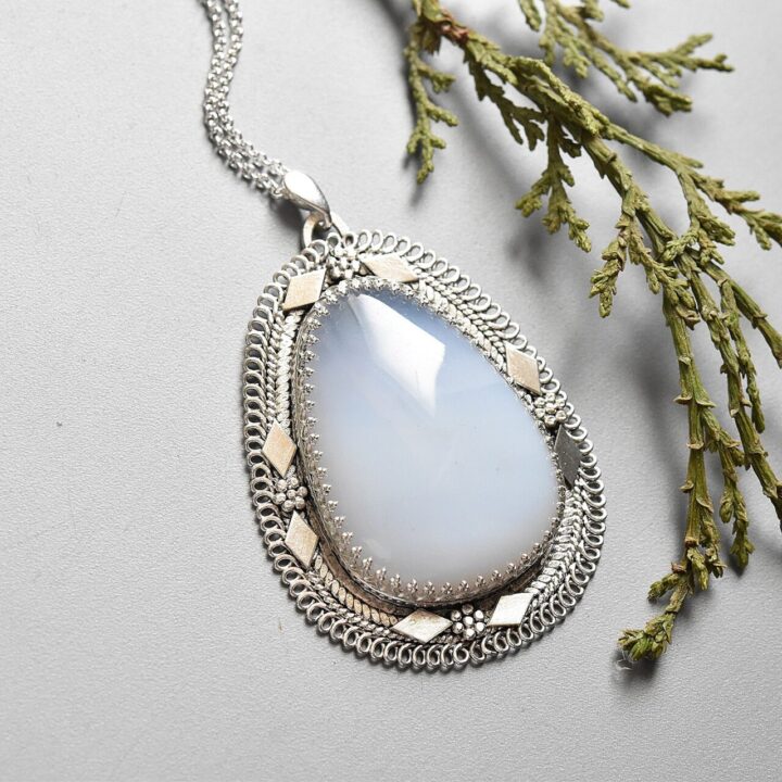 Light Blue Antique Mohave Chalcedony Pear-Shaped Pendant – Sterling Silver Handmade Jewelry