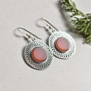 Tags: circle filigree earrings, Ethnic earrings with red stones, July Birthstone earrings, Red carnelian silver earrings