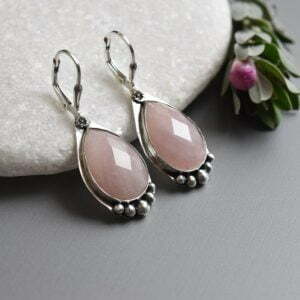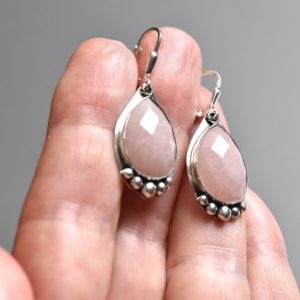 Tags: Rose quartz earrings, Rose teardrop earrings, Silver drop earrings