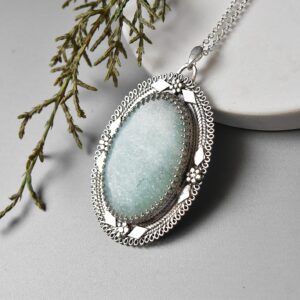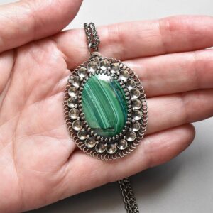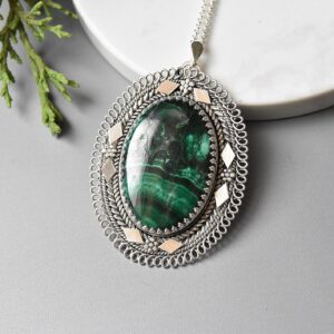 Green Antique Mohave Malachite Silver Ellipse Pendant – Handmade Unique