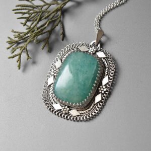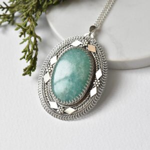 Antique Moon Filigree Mohave Turquoise Silver Necklace – Unique Handmade Boho